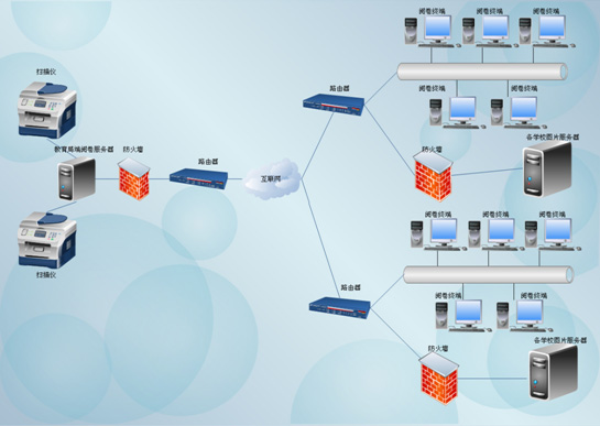 南昊網上閱卷互聯網應用方案拓撲圖如下: